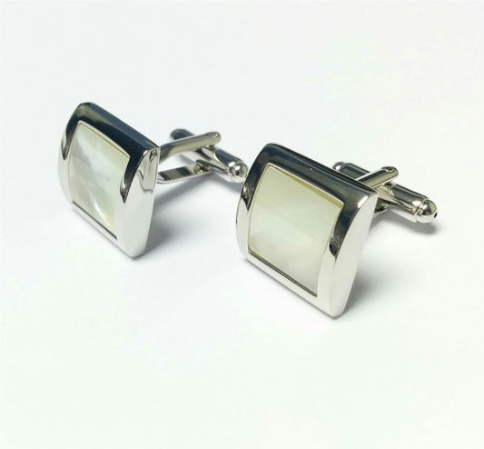 Charles William Mens Ladies Silver Tone Cufflinks With Mother Of Pearl Stone Wedding Formal Business