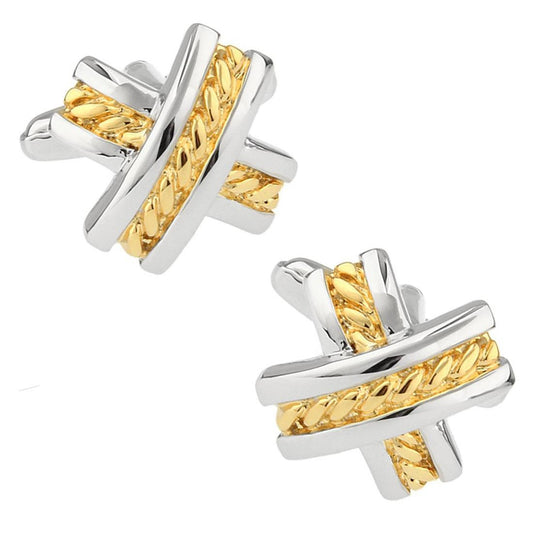 Charles William Gold Silver Bow Criss Cross Cufflinks Present Two Tone Shirt Herringbone Smart UK