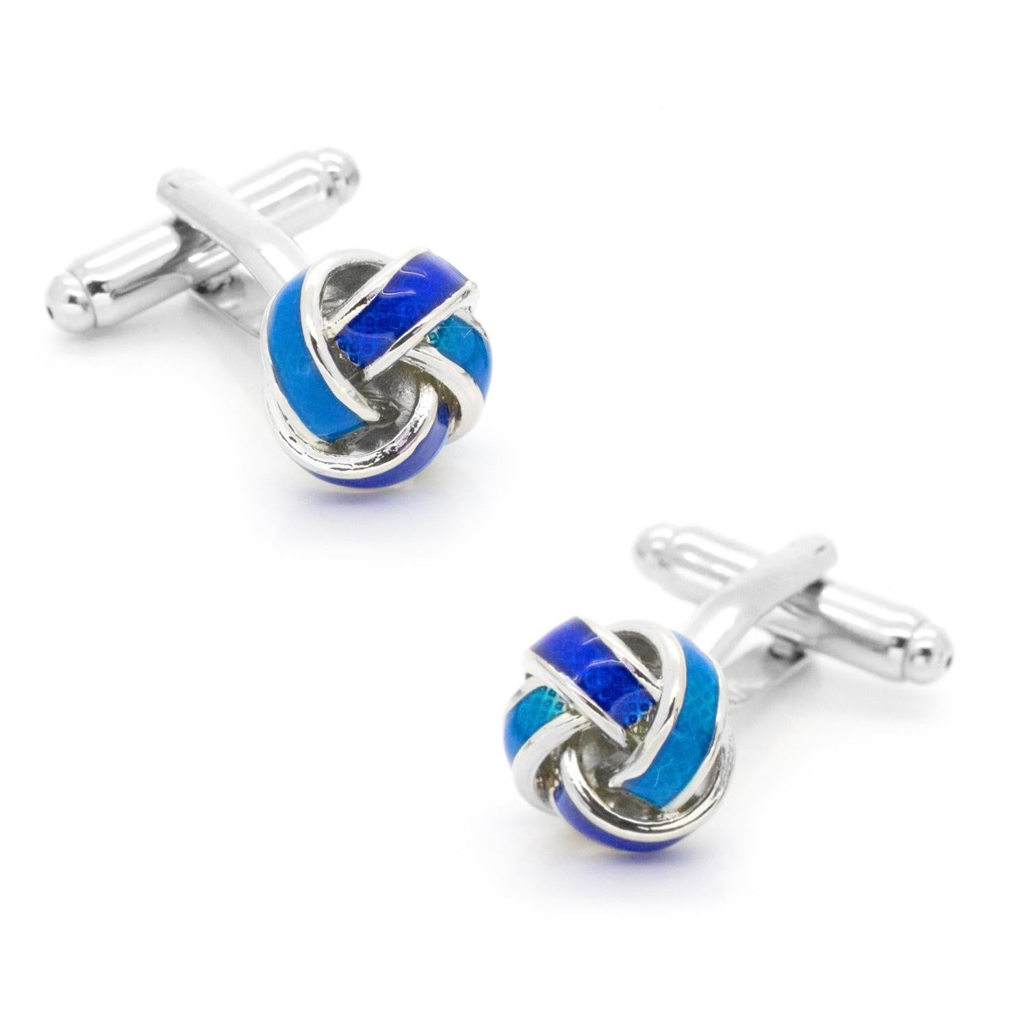 We have a range of knot cufflinks which include these elegant blue silver tone knot cufflinks. They have a silver tone look and a swivel bar close. Comes packed inside our velvet gift presentation bag.