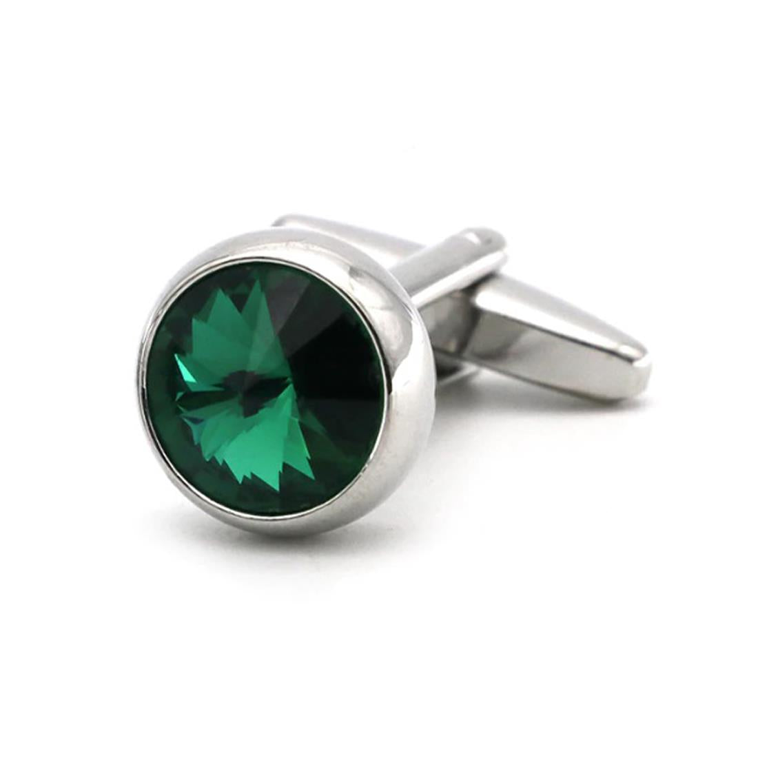 These quality cufflinks are a silver bezel colour with a delightful emerald green inner stone which has shard like flashes inside the stone - a unique and classy looking pair!