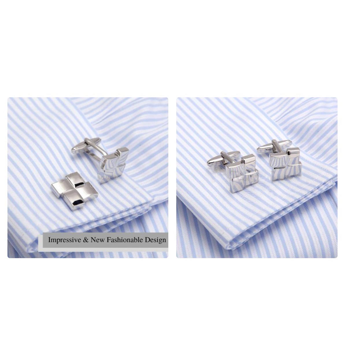 Charles William Mens Smart Overlapping Cufflinks Unique Design Square Rectangle Gift