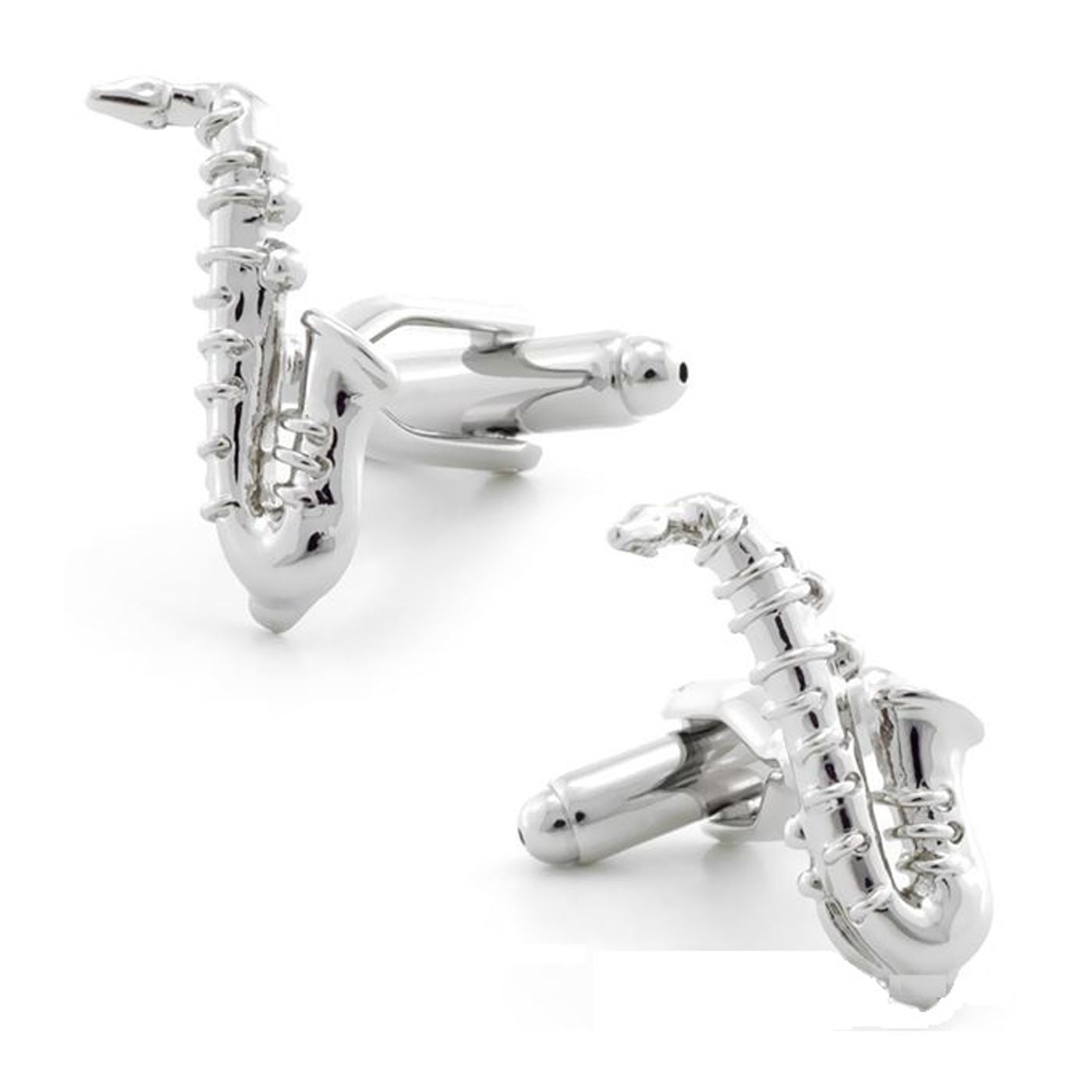 This listing is for a pair of saxophone cufflinks. The colour is silver and size is approximately 2.2cm. They are high quality and we love these cufflinks because they look great and are sure to get you noticed! A wonderful gift for any occasion. These cufflinks come inside a free velvet gift pouch.