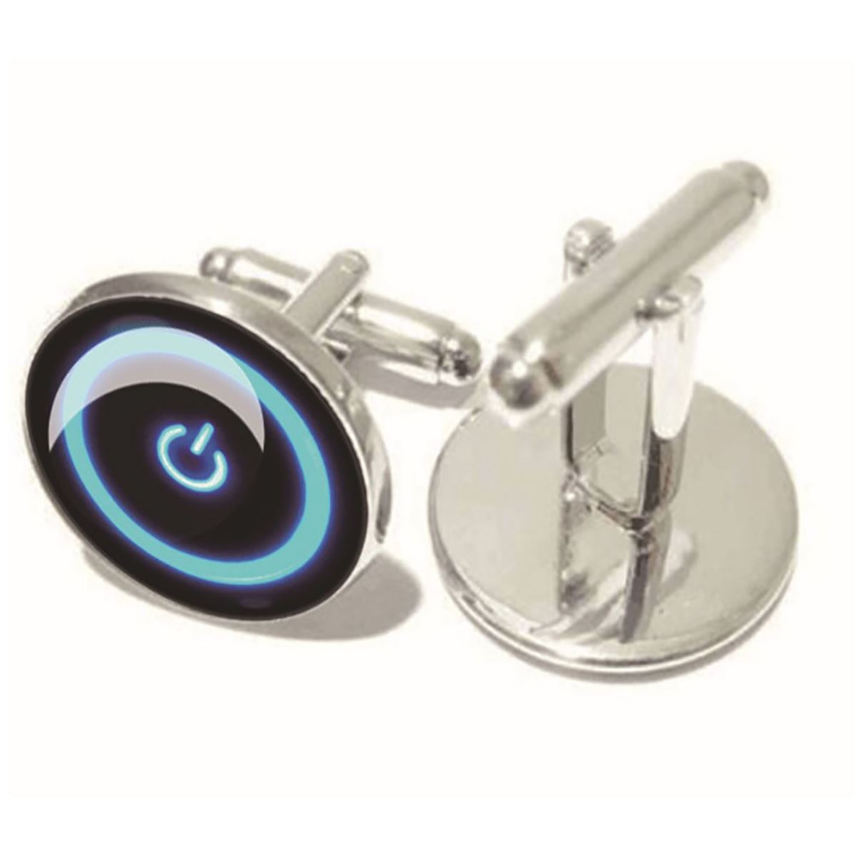 These are a pair of power button style cufflinks. The power button sign is vibrant blue and is sure to get you noticed and a great conversation starter! The perfect gift for any tech or computer fan. A cute accessory for your shirt and sure to make people smile! We love this item because it is so unique and looks great.