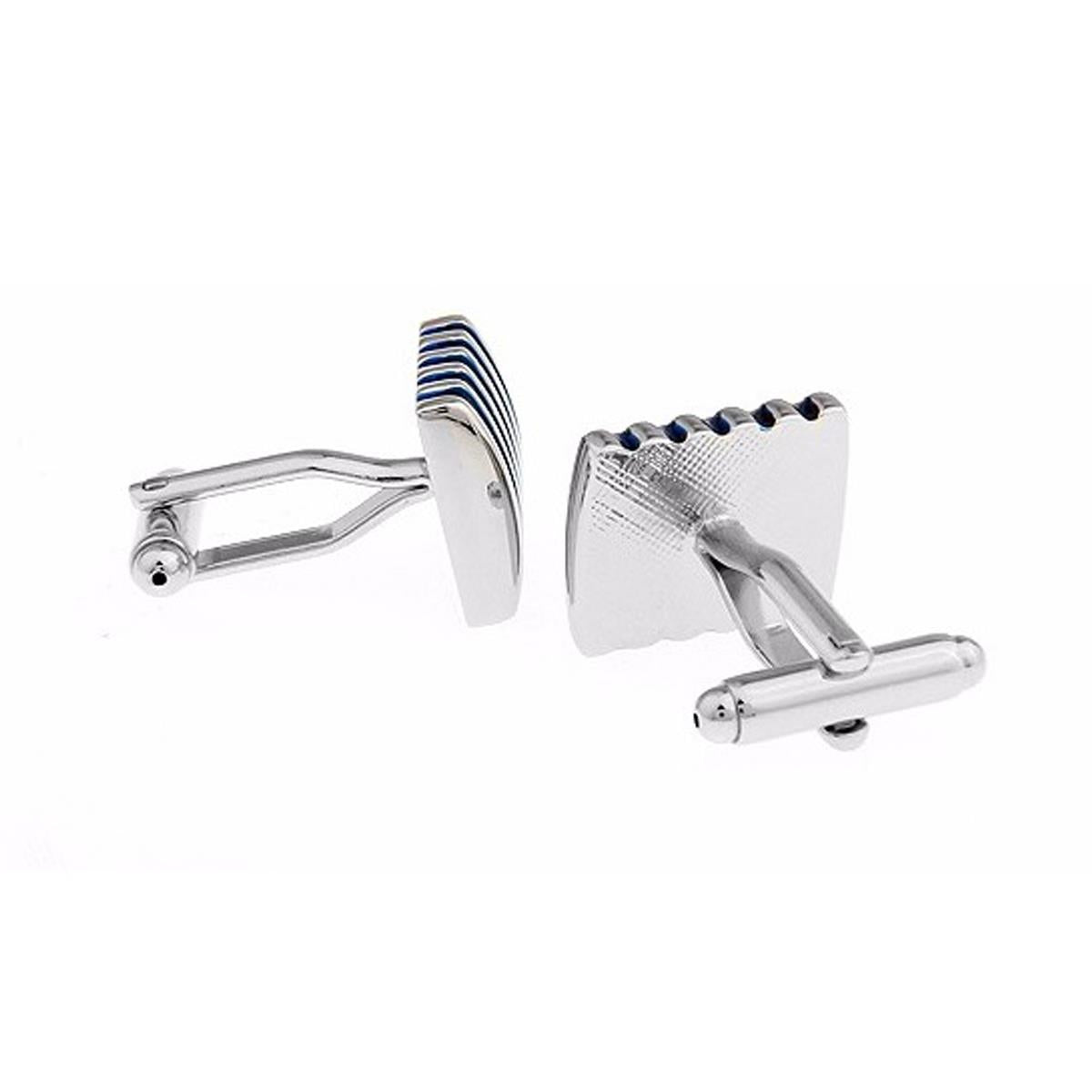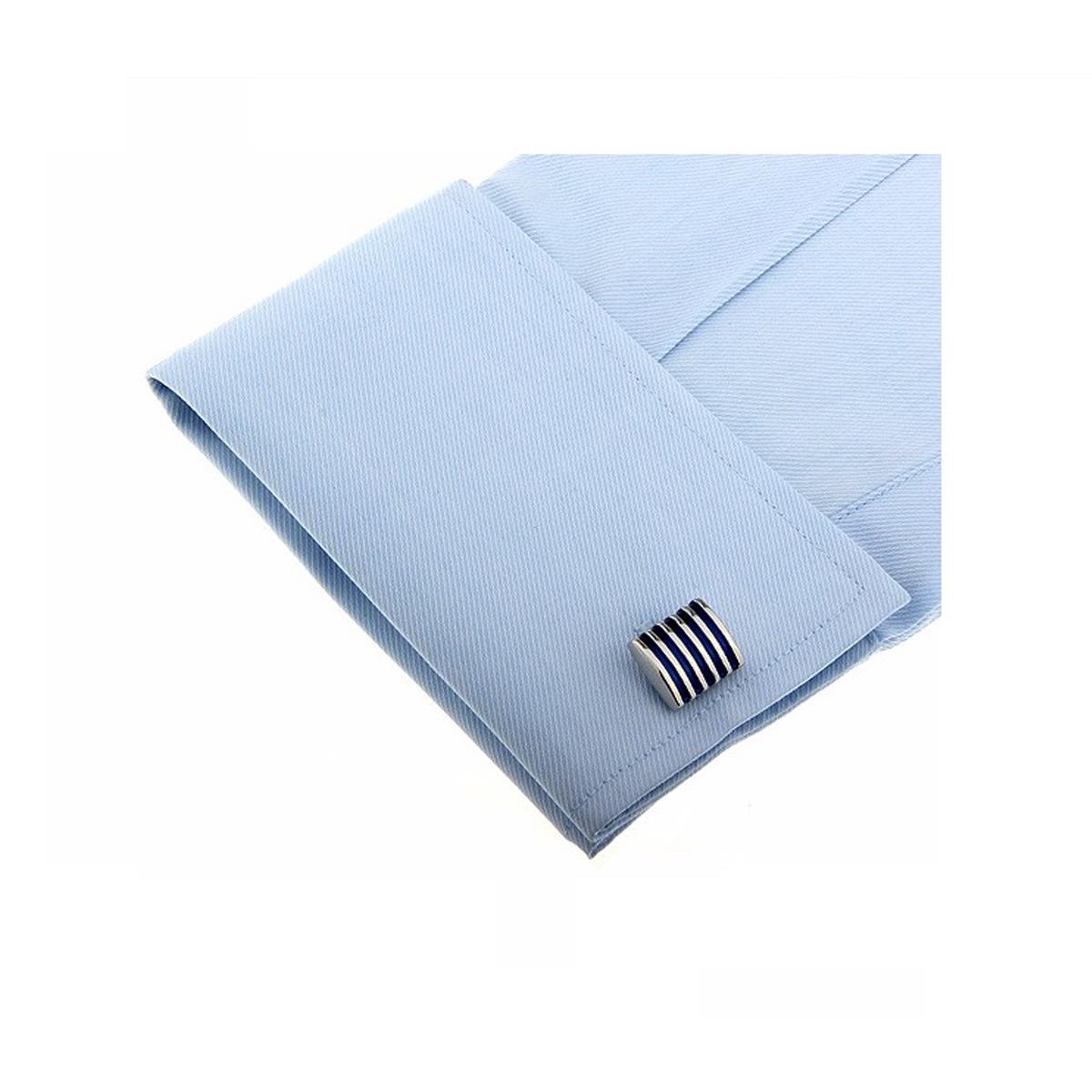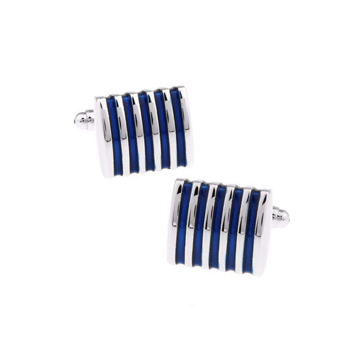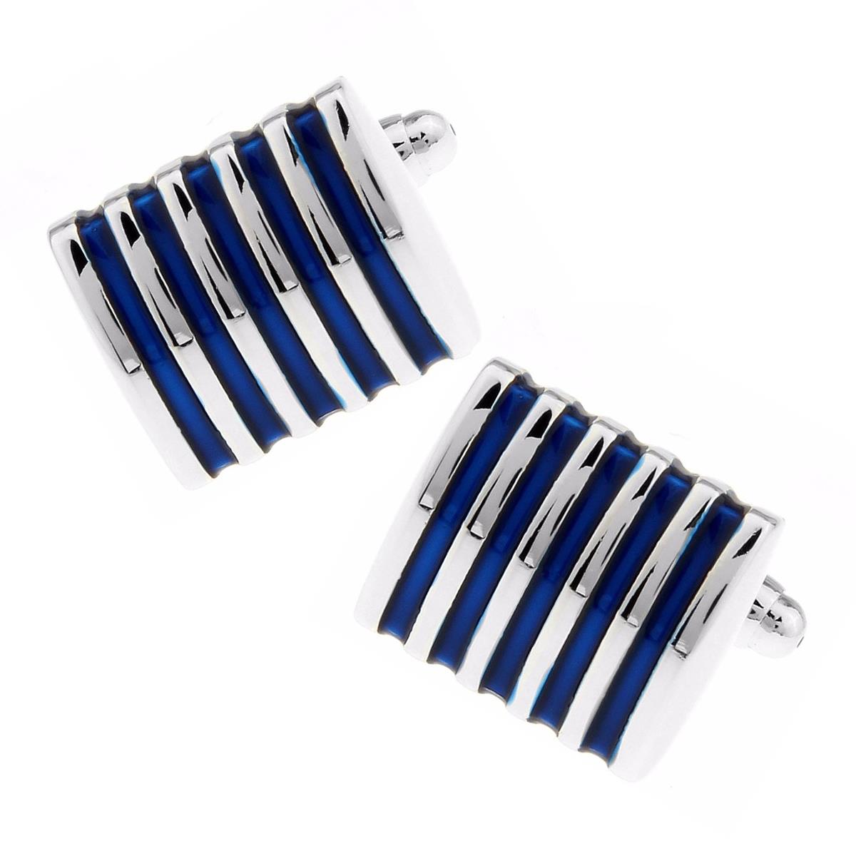 Charles William Premium Blue Silver Stripe Cufflinks Novelty Rectangle Shirt Cuff Links Fashion UK