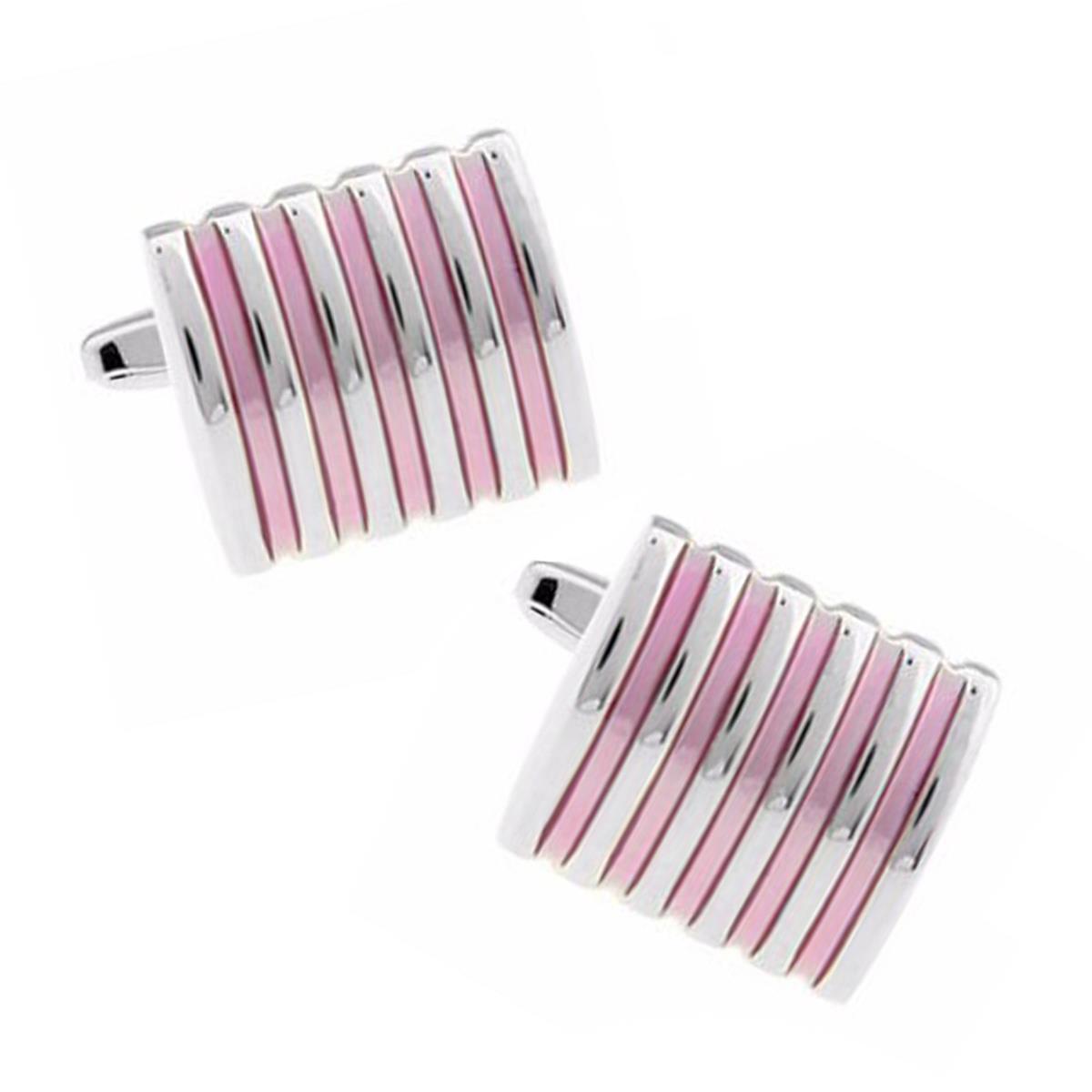 Charles William Premium Pink Silver Stripe Cufflinks Novelty Rectangle Shirt Cuff Links