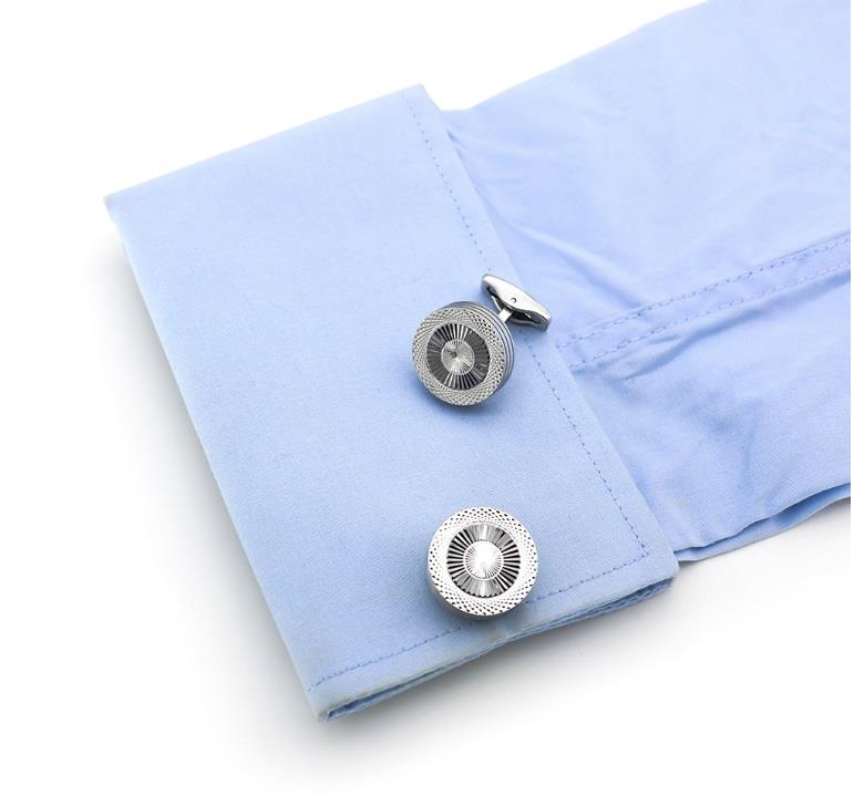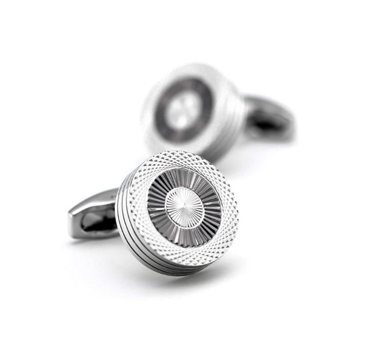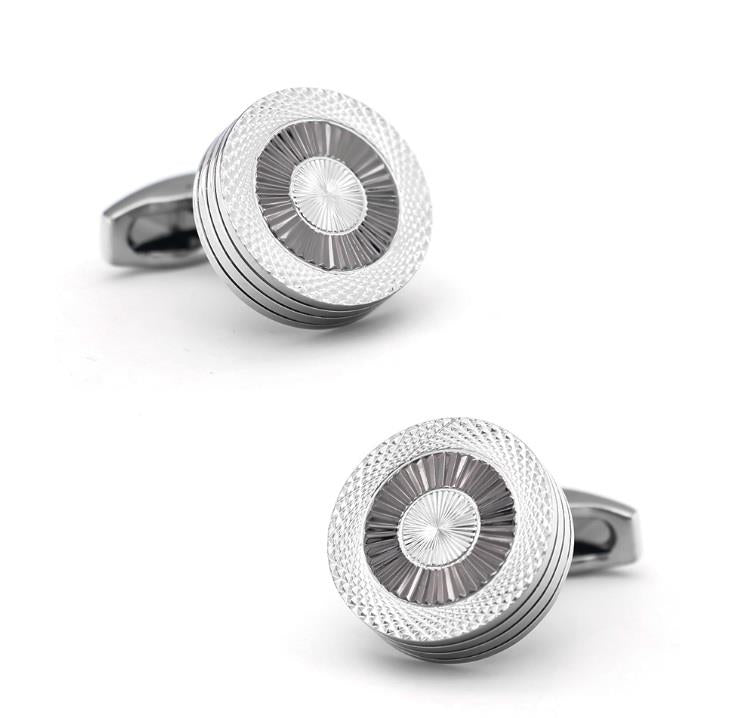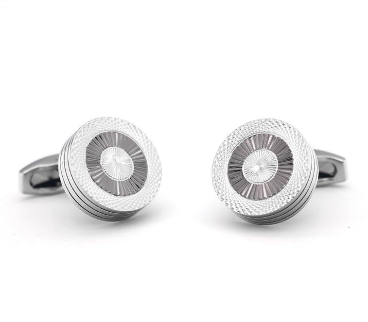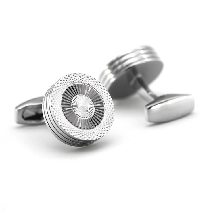 Charles William Premium Silver Cufflinks Unique Design Ridged Round Shirt Cuff Links