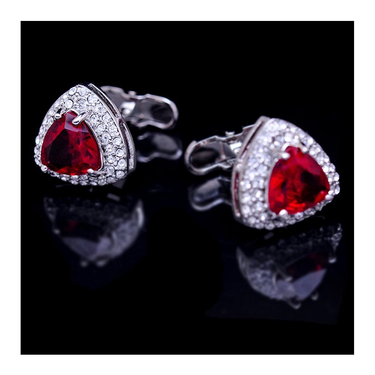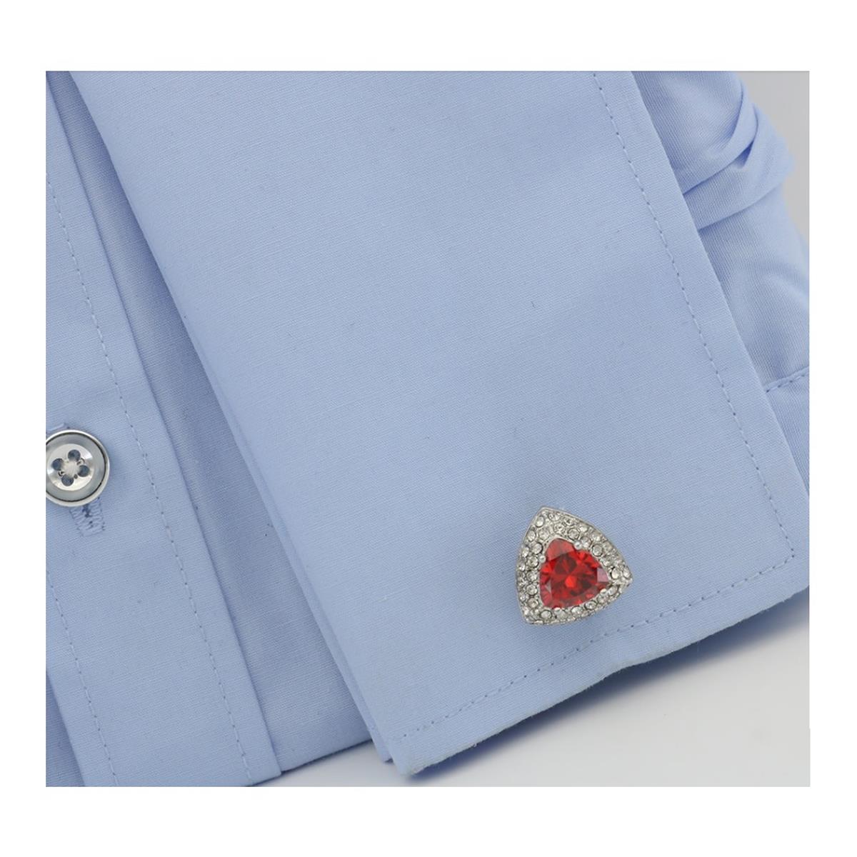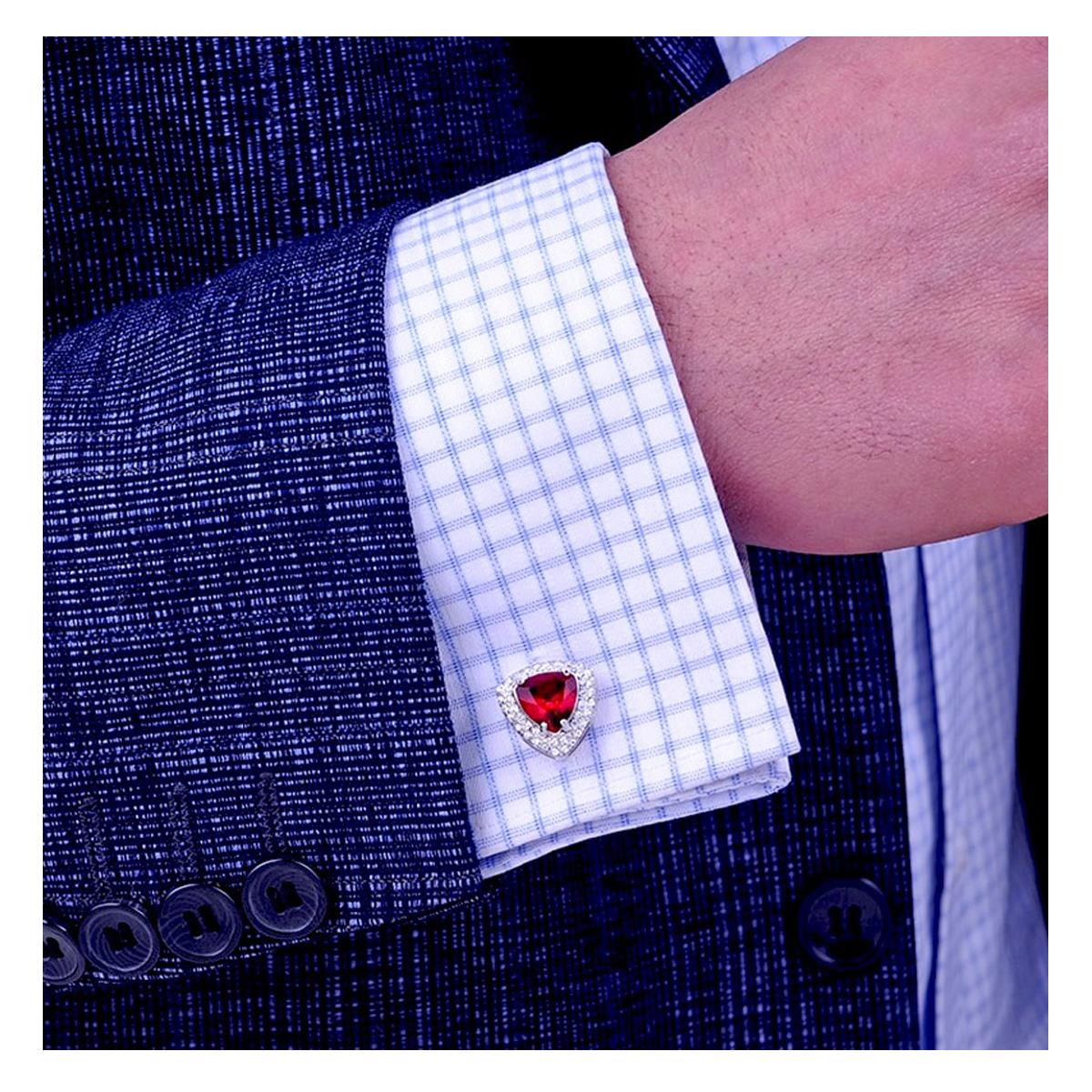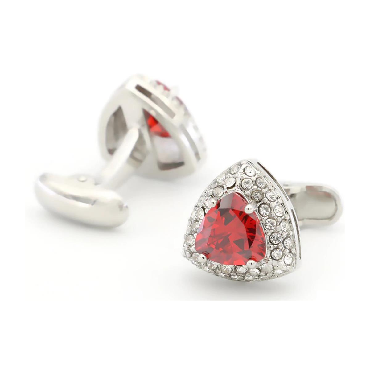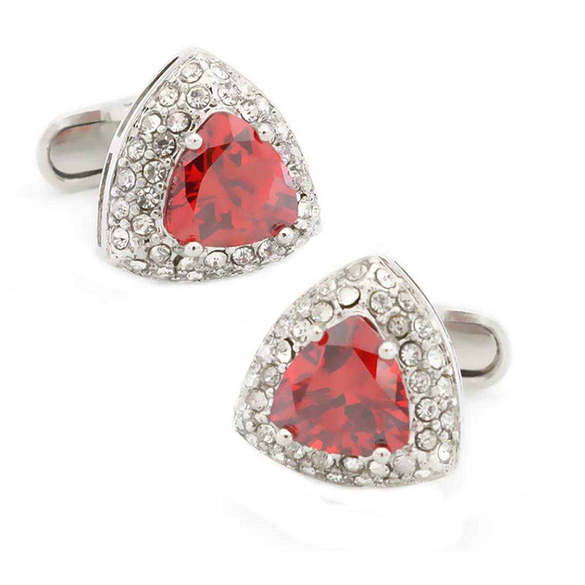 Charles William Red Triangle Crown Crest Shield Shaped Cufflinks Stone Studded Novelty Shirt Cuff Links