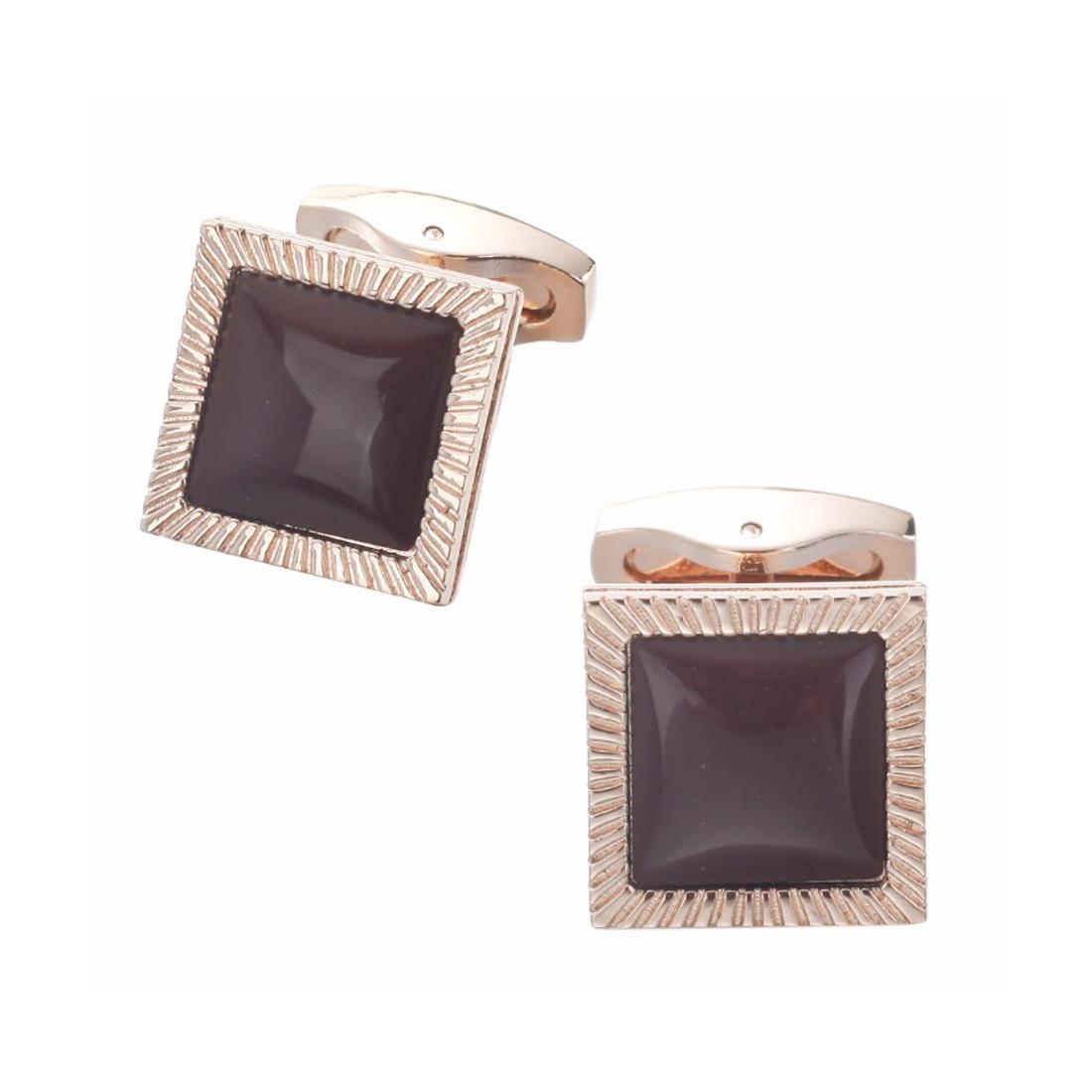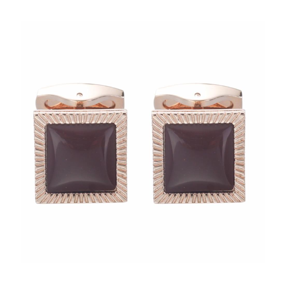 Charles William Rose Gold Square Cufflinks Purple Stone Ridged Bezel