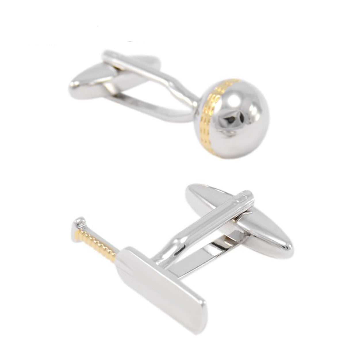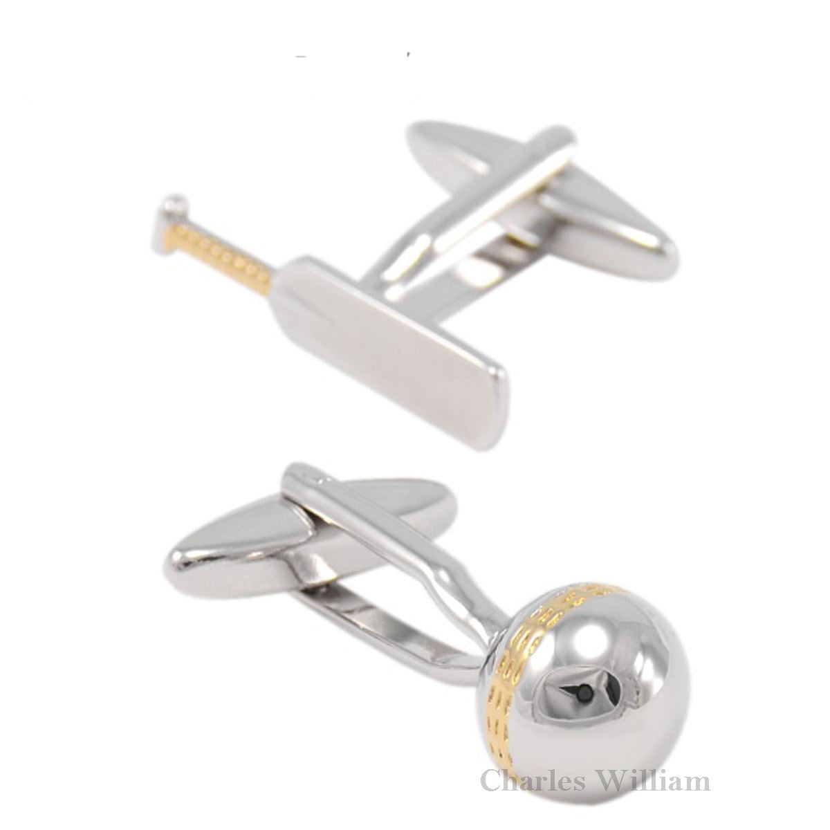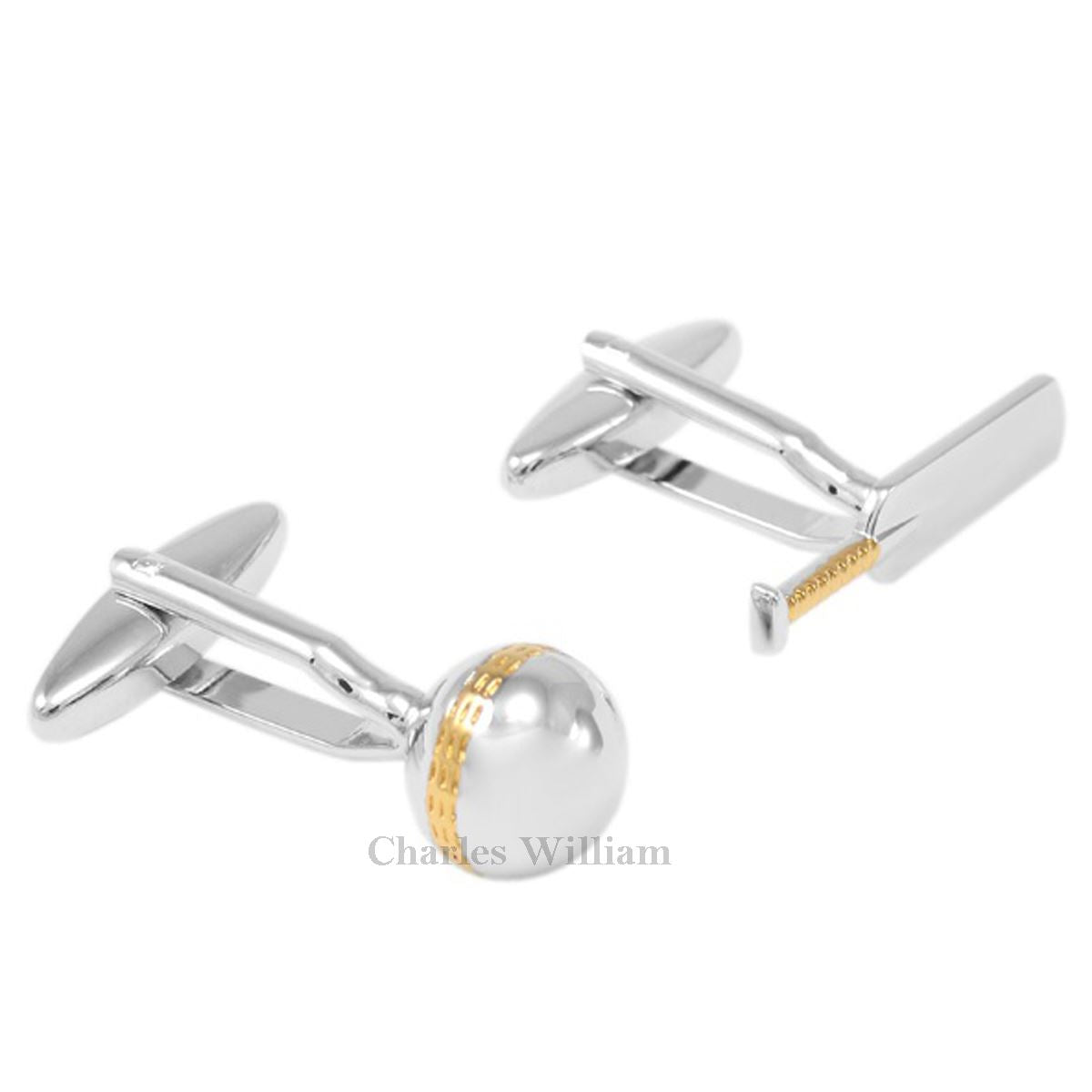 Charles William Silver Cricket Set Novelty Cufflinks Wedding Business Free Gift Pouch