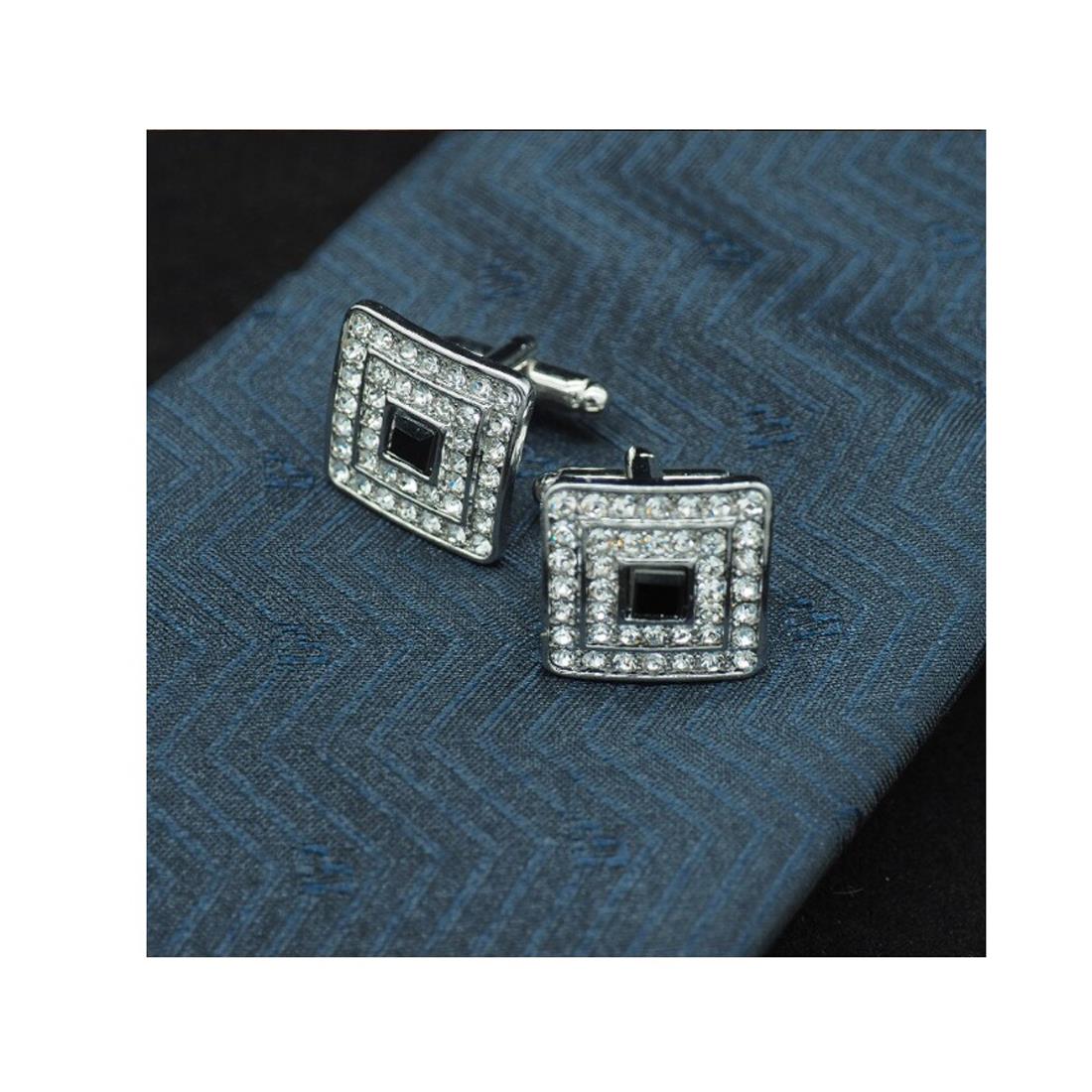Charles William Silver Cufflinks Square With Encrusted Crystal Stones And Central Black Stone