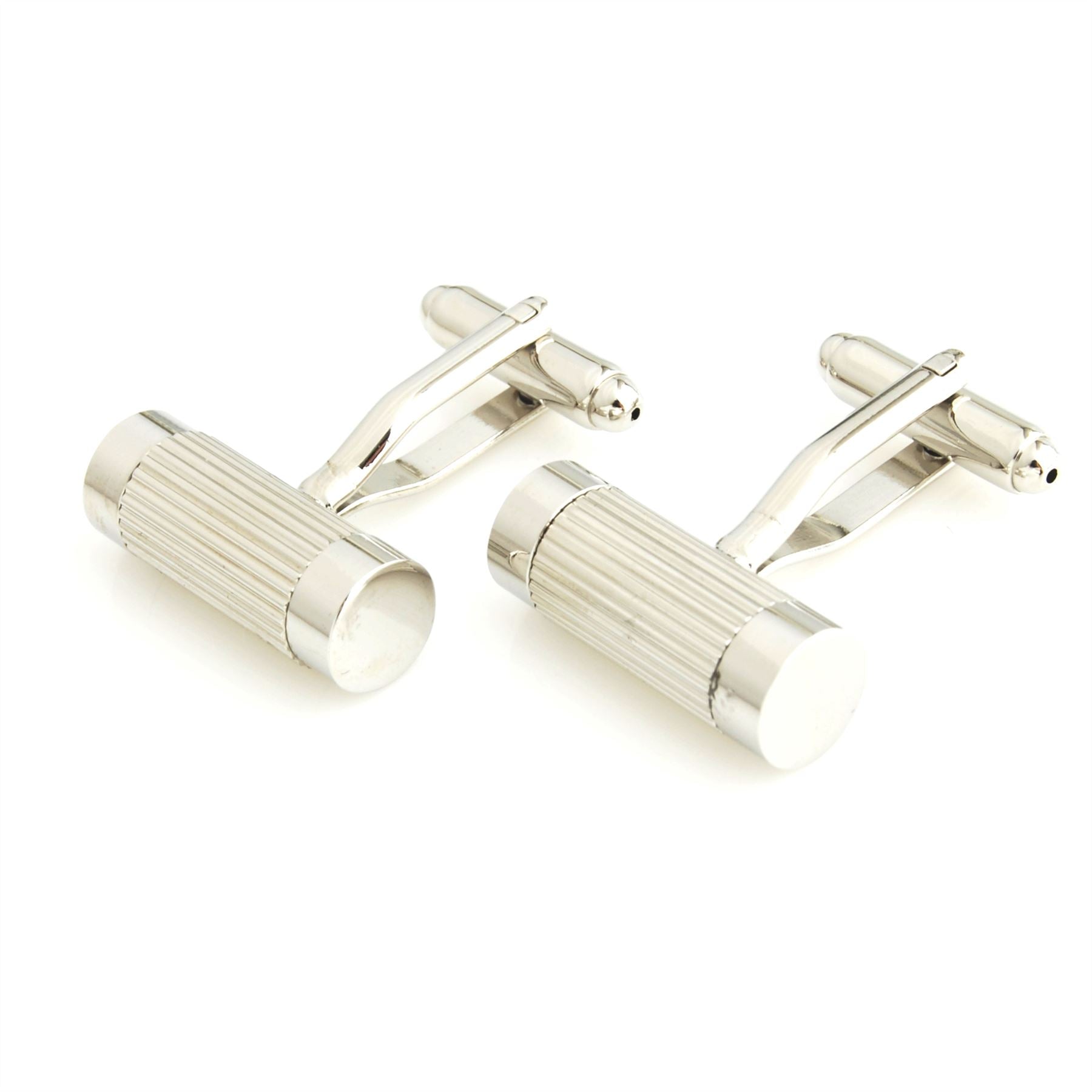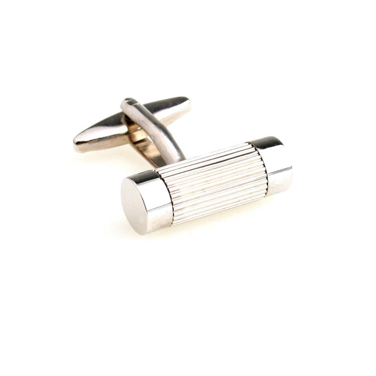 Silver tone barrel style cufflinks with encrusted ribbed design. All our cufflinks come with a free presentation pouch (pictured).