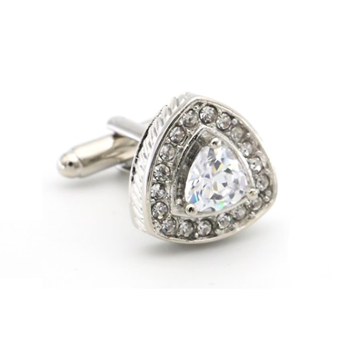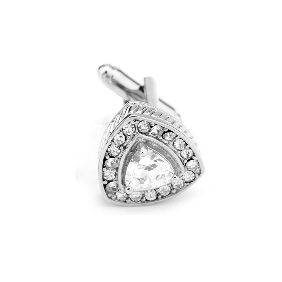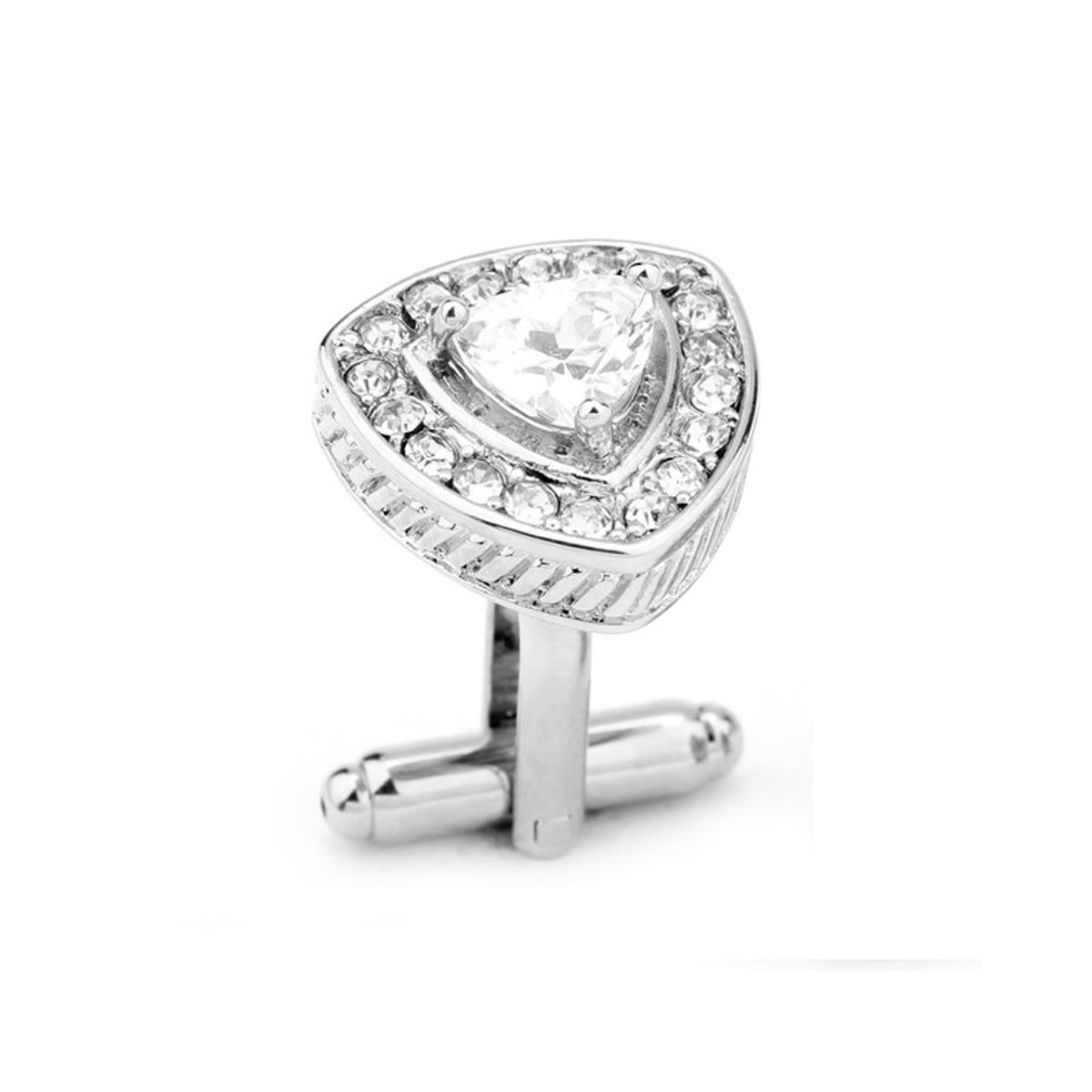 Charles William Silver Triangle Crown Crest Shield Shaped Cufflinks Stone Studded Novelty
