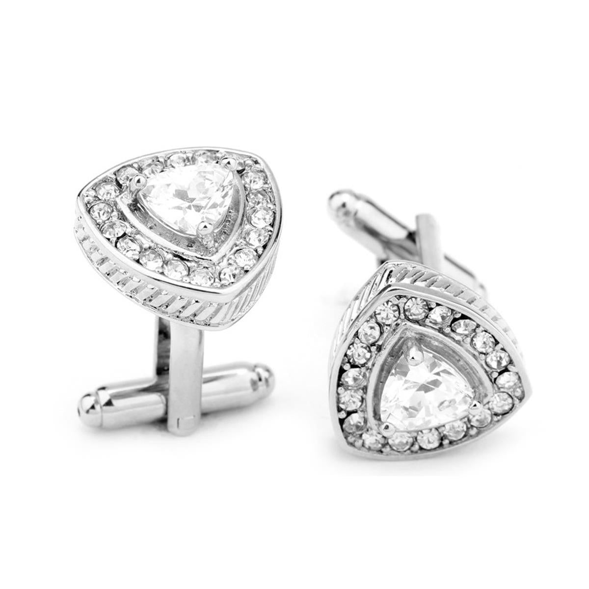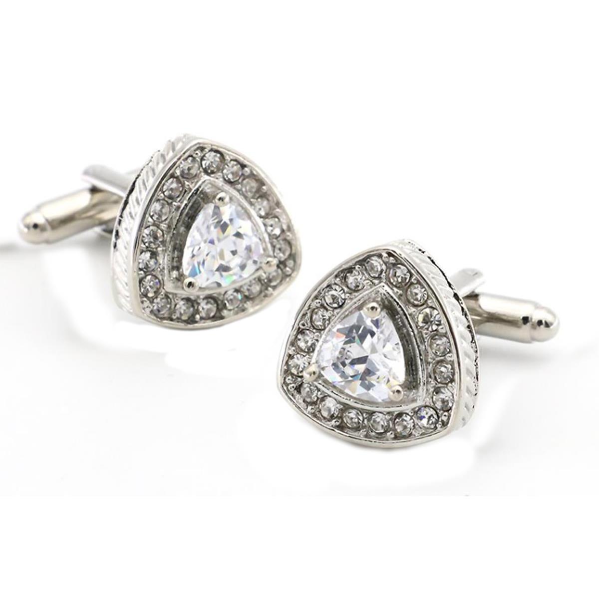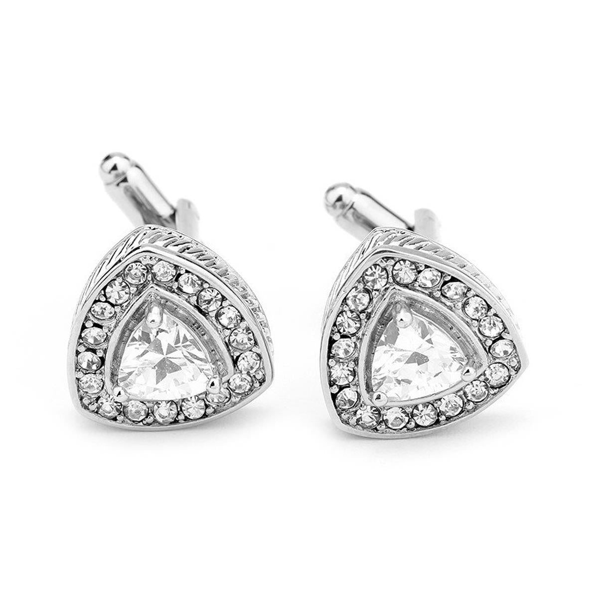 Charles William Silver Triangle Crown Crest Shield Shaped Cufflinks Stone Studded Novelty