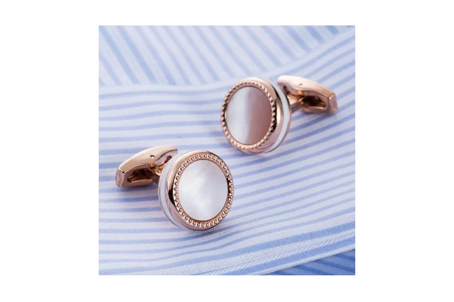 Rose Gold Cufflinks Mother Of Pearl Stone and White Band