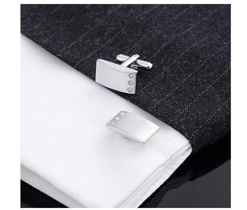 Luxury Silver Cufflinks Three Row Stone Elements Great Gift Elegant Present