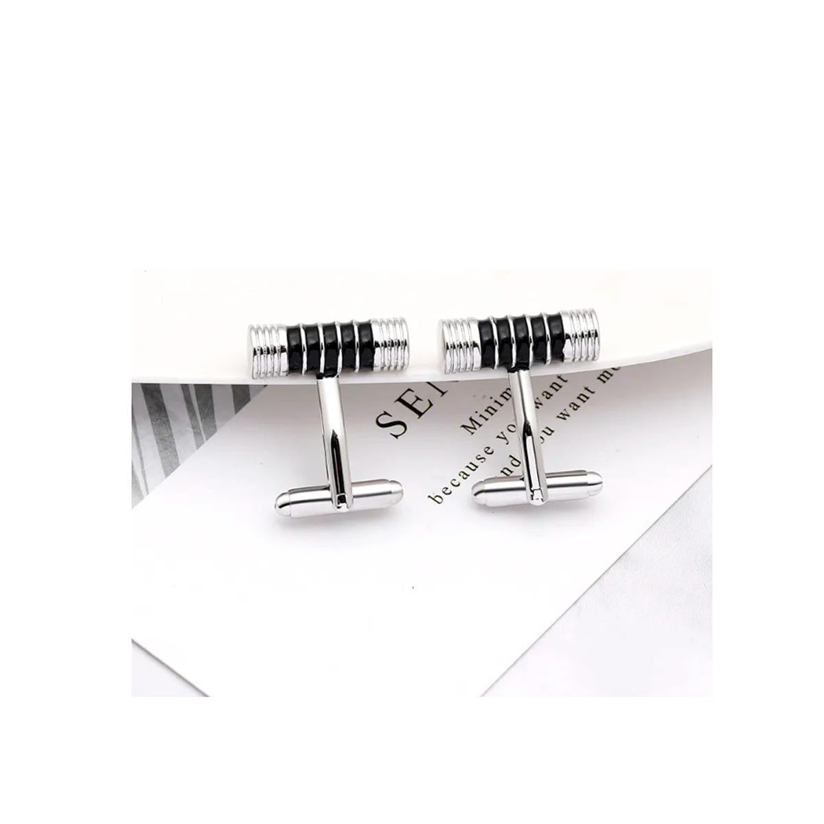 Silver Barrel Cufflinks 5 Stripes Ribbed Black Design